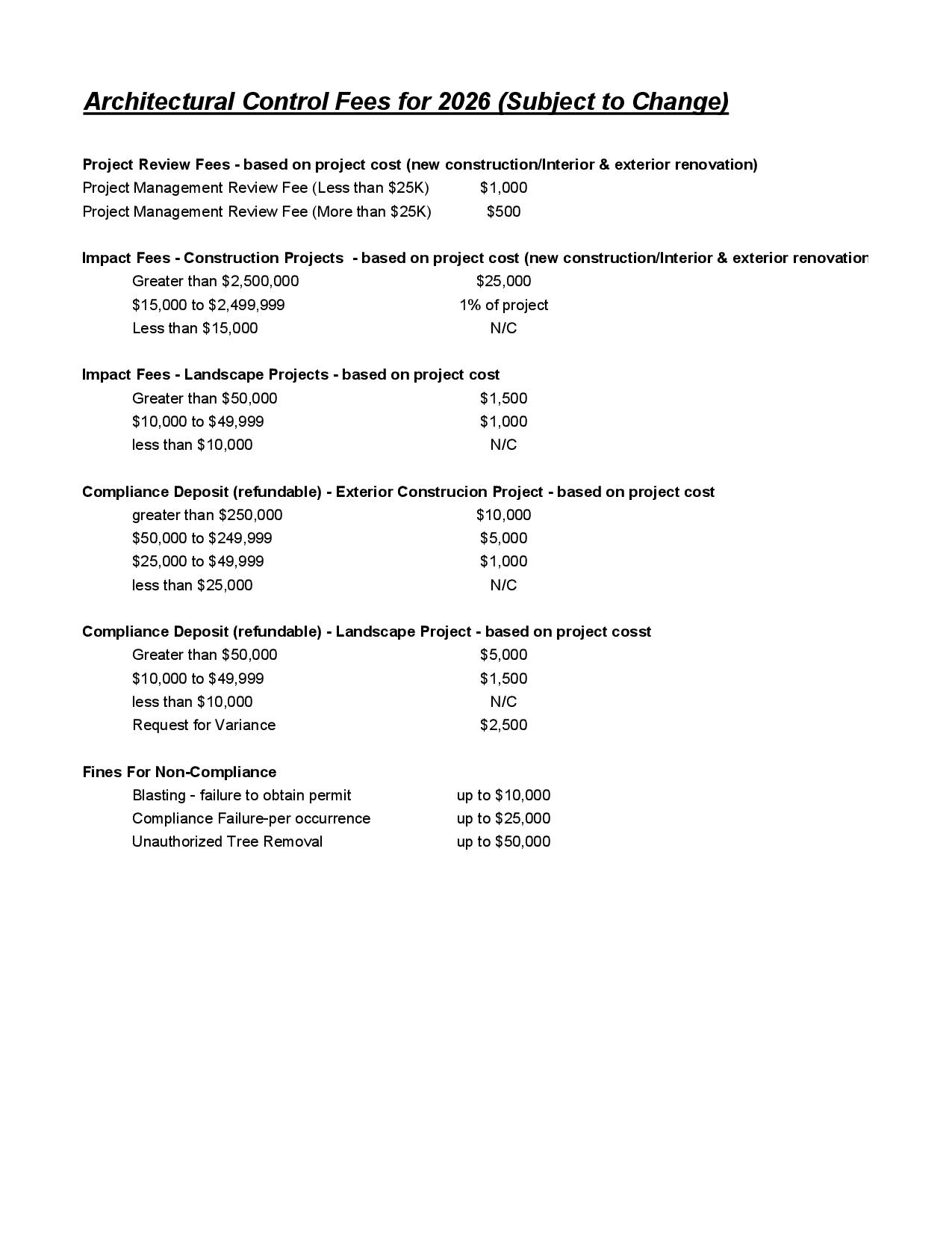 Prior to any exterior modification including landscaping or tree removal, each property owner must get approval from the ACC before any alterations are made. If you are considering any exterior projects, large or small, whether new construction, landscaping changes or modifications to the exterior of your home or property, you must get approval from the ACC. Note that the ACC requests at least 14 days for review and approval of exterior modifications, so please plan ahead.